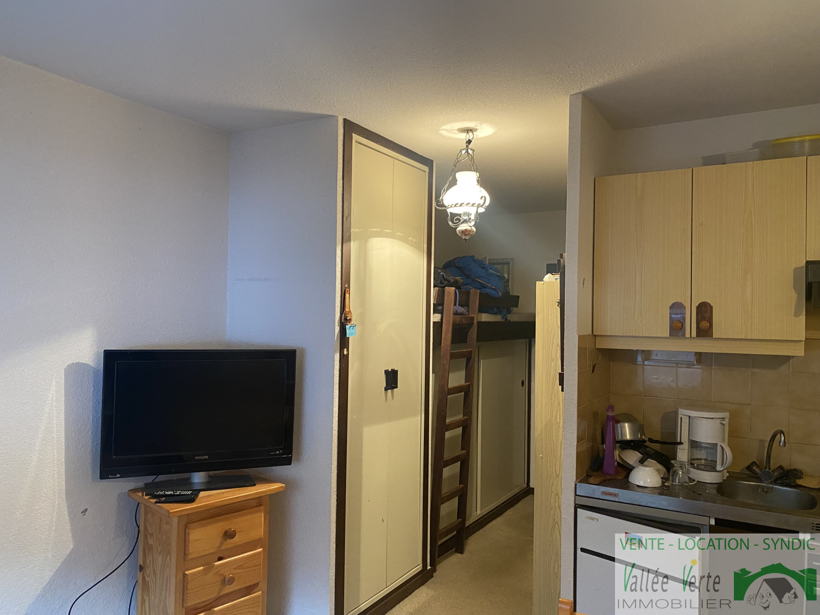 En Exclusivité sur les hauteurs de Saint Jeoire, dans la Résidence MONT BLANC, un studio d'une srufrace loi carrez de 18.73 m² comprenant entrée/coin montagne, salle de bains, kitchenette ouverte sur séjour et un balcon.
