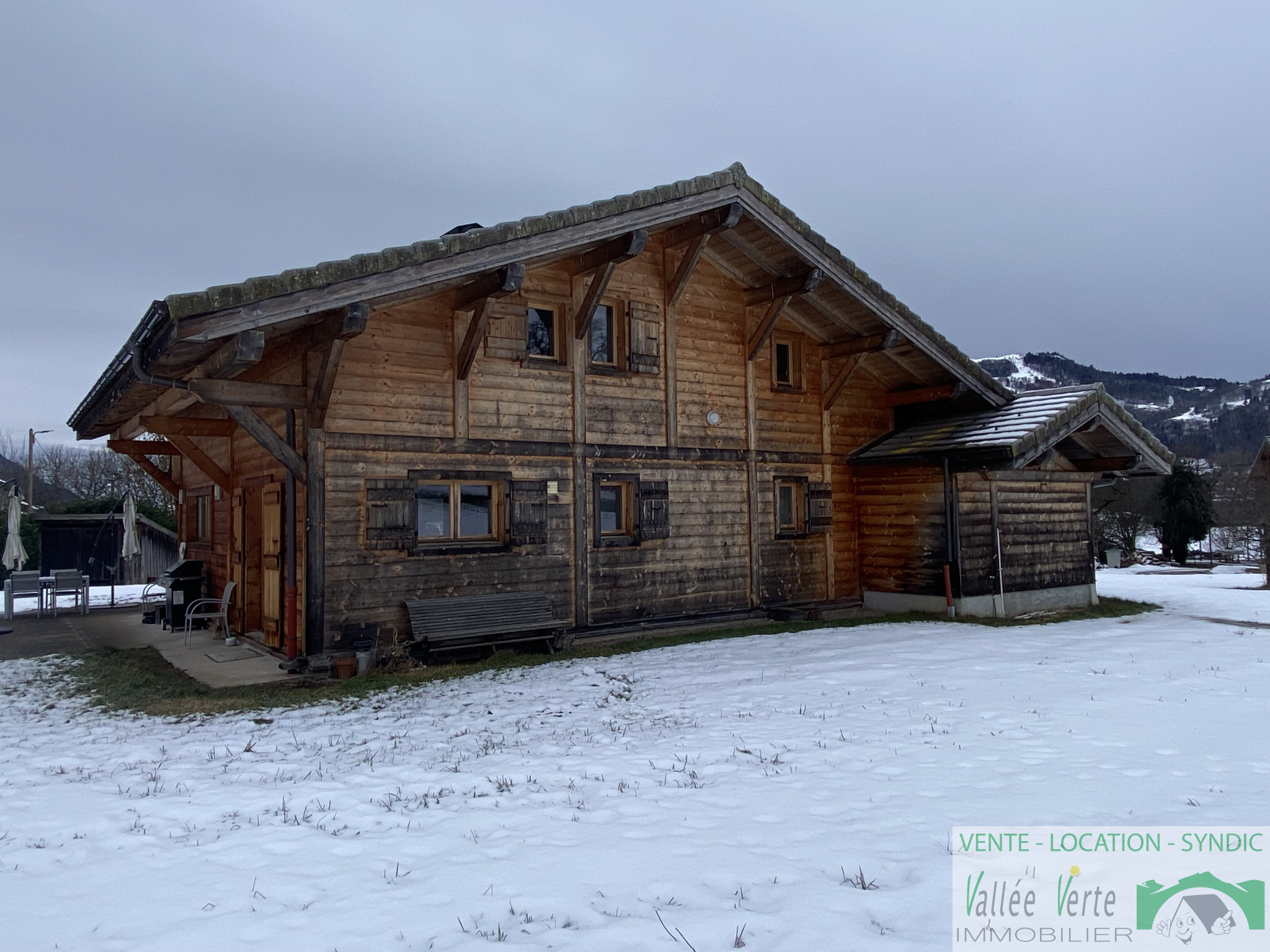 Sur les hauteurs de la commune de Mieussy ( entre village et station Praz de Lys / Sommand ) un Chalet récent de 2013 d'une surface habitable de 138 m² environ sur 2 niveaux comprenant 6 pièces principales dont 4 chambres, 1 salle de bains et 1 salle d'eau, cuisine équipée ouverte sur salon/séjour, garage, dépendance et terrain de 1080 m² environ.